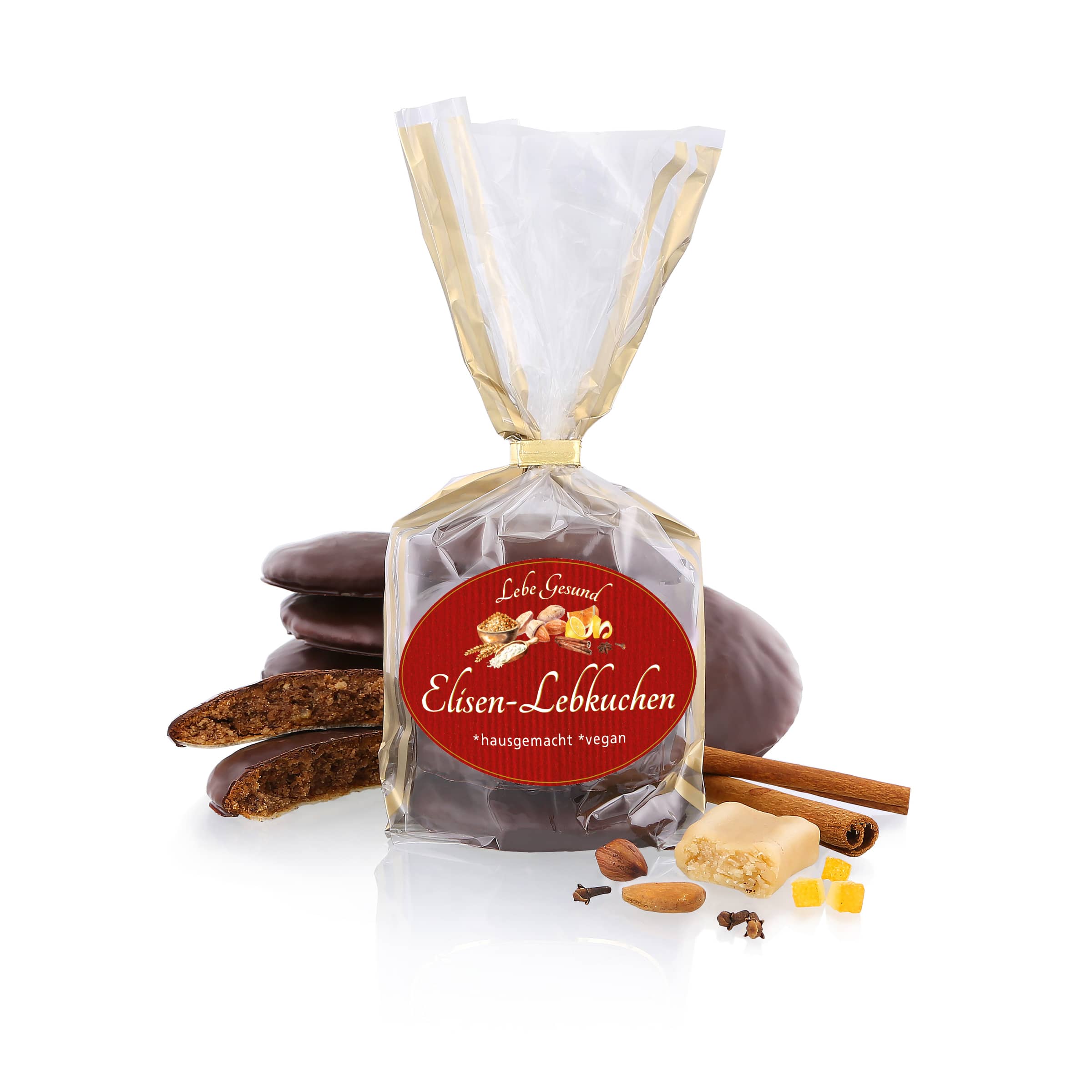 Jeder Elisen-Lebkuchen ist wie ein Besuch in der Lebkuchen-Feinbäckerei, wo es wie zu Grossmutters Zeiten nach feinen Gewürzen und aromatischer Schokolade duftet. Sie sind handgemacht, aus besten Zutaten: echtes Marzipan, einzigartige Gewürze und Dinkelmehl aus der Lebe Gesund-Steinmühle, mit feiner Zartbitter-Schokolade überzogen.