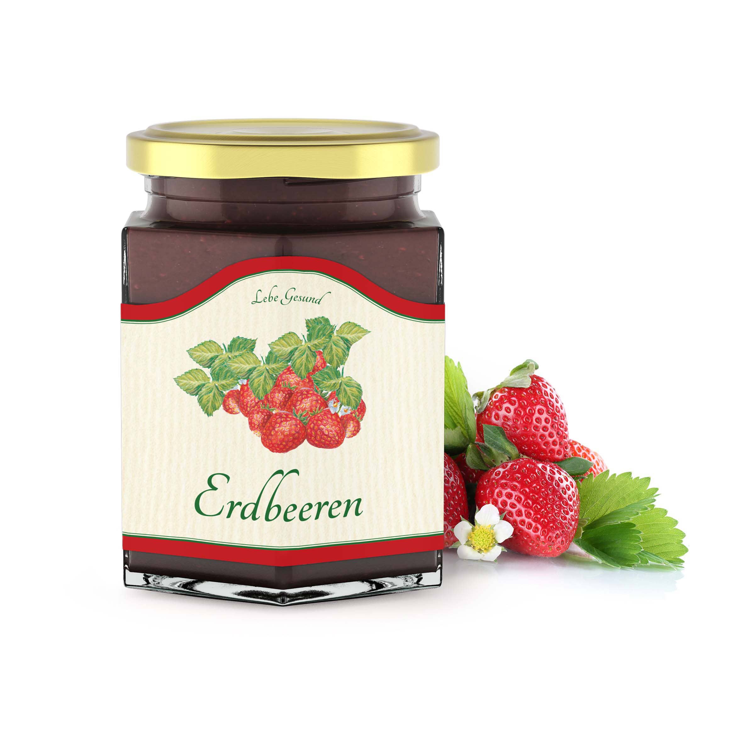 Erdbeeren* 67%, Traubendicksaft* 26%, roter Johannisbeersaft*, Geliermittel: Apfelpektin, Zitronensaftkonzentrat*
