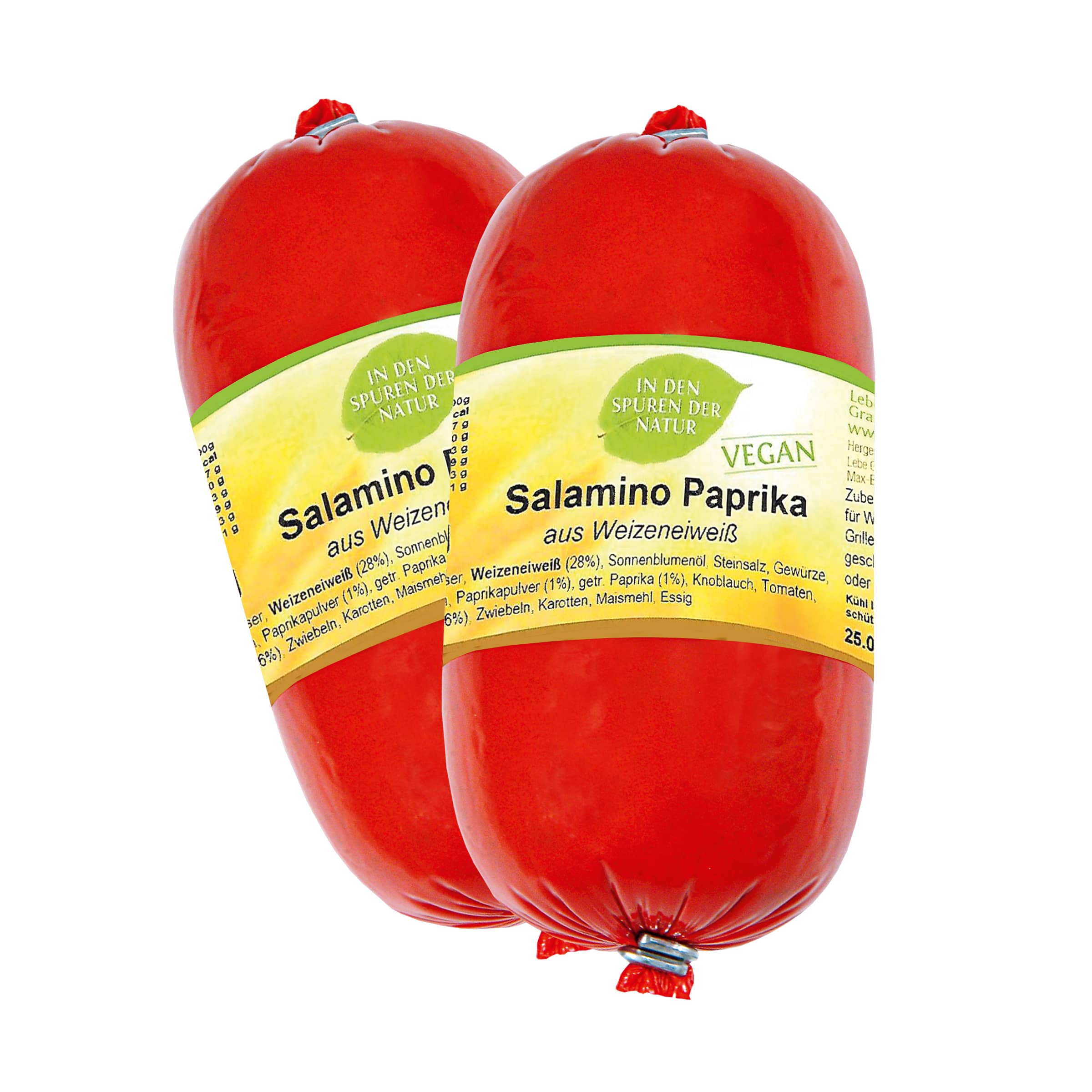 Erleben Sie feinsten Vegi-Wurst-Genuss mit unserer herzhaften Salamino Paprika! Rote Paprika gibt dem rein veganen Produkt aus Weizeneiweiss sein besonderes Aroma und eine angenehm leichte Schärfe.