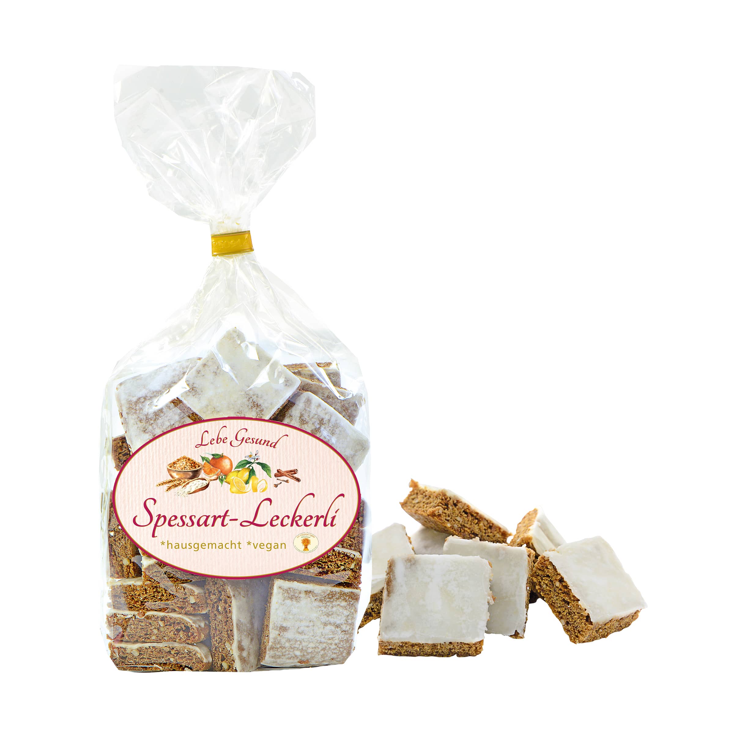 Eine echte Spezialität aus dem Spessart: Die feine Lebkuchenvariante aus Dinkelmehl mit hauchdünner Zuckerglasur, Zimt, Nelken und kandierten Früchten.